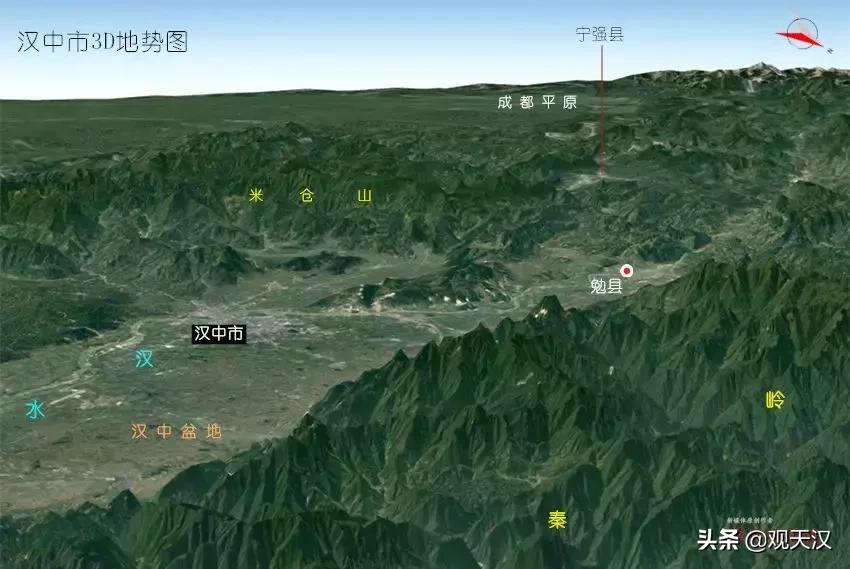 汉中市境北部秦岭势如屏障,最高峰在洋县昏人坪梁顶,海拔3071米,其它较高的山峰有佛坪县光头山2838米、洋县摩天岭2603米、留坝紫柏山2610米、勉县光头山2606米,一般山体海拔为10002000米。 南部米仓山(又称巴山)高峻雄峙,最高峰在镇巴县箭杆山,海拔2534米,较高山峰还有南郑县铁船山2468米、红山2367米、光头山2389米,一般山体海拔在10001500米; 汉中市最低处在西乡县茶镇南沟口,海拔371.2米。汉江横穿盆地中部形成冲积平原,汉中盆地东西长116公里,南北宽约530公里,汉台区附近最宽为2530公里;汉江支流牧马河与泾洋河在西乡县城东北汇合,形成冲积性宽谷坝子,名为西乡盆地。 汉中盆地海拔在500米上下,而秦巴山体高出汉中盆地5002500米。地貌类型多样,但以山地为主,占总土地面积的75.2%(其中低山占18.2%,高中山占57.0%),丘陵占14.6%,平坝占10.2%。  举报 举报